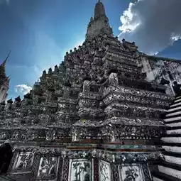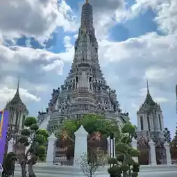 Wat Arun, also known as the Temple of Dawn, is located on the west bank of the Chao Phraya River in Bangkok, Thailand. It is one of Bangkok's most iconic Buddhist temples, with a history dating back to the Ayutthaya period. The temple was later rebuilt in the late 18th century by King Taksin (also known as King Thonburi), a national hero of Thailand. King Taksin, of Chinese descent, led his army to repel foreign invaders and established the Thonburi Kingdom, and the temple was named in his honor.