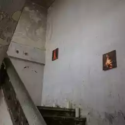 The artist uses sponges and terracotta as the main materials of his work, with many small paintings on terracotta and large paintings on sponges arranged along the stairwell of an old building leading to the third floor. The highlight of the work is the free permeability of the pigments through the surface, using red soil from Khao Yai mixed with local plants. Before letting the natural light and shadows of the day overlap, turning it into a living and never-ending painting.
