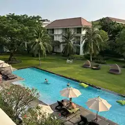 U Sathorn Bangkok, a hotel in the heart of the city that gives you the feeling of being on vacation at a resort in the countryside. The highlight of this place is the large pool in the middle of the garden 🥽, shady and very inviting to swim in. The pool is in the middle of the hotel, surrounded by white U-shaped guest rooms. The accommodation is decorated in a French colonial style, looking very luxurious. Plus, the atmosphere here is quiet and surrounded by shady trees 🌴🌿 What I like is that in the morning, we can order breakfast to eat in the room or by the pool. It is also convenient to travel. There is a tuk-tuk service to MRT Lumpini and there are also bicycles to ride 🚲 The fitness center here is open 24 hours.