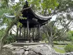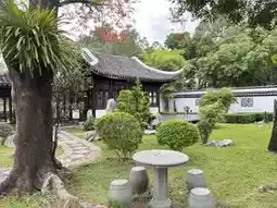 The Chinese garden corner features Chinese-style buildings, bridges, and ponds.