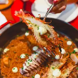 โข ๐ผ๐ง๐ง๐ค๐ฏ ๐๐๐๐ง๐ค (Arroz Negro): black squid ink rice with grilled red carabineros shrimp, clams and sofritto sauce