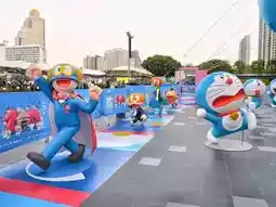 🎊 Zone 100% Doraemon River Park Exhibition 🌊 River Park area, G floor (on the waterfront of ICONSIAM pier): Exhibits the Doraemon army and friends Life-size characters and the highlight is a giant inflatable Doraemon, over 12 meters high.