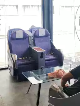 #Get a discount without relying on luck. For those who visit the Air Force Museum, don't forget to stop by for a delicious drink at Lamun Cafe, a lovely cafe with a warm atmosphere located inside the Air Force Museum. The shop is decorated in a minimalist style. They use airplane chairs instead of ordinary chairs. It looks very chic. There are many menus to choose from, including coffee, pastries, bakery, and cold drinks. It's perfect for the hot weather. There are seats both inside and outside. You can see the view of the airplanes on display. The atmosphere is unique and different from other cafes.