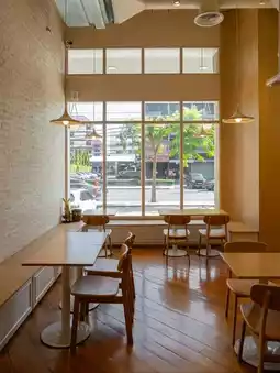 A cute cafe with a good mood in the Mengjai area that has both Specialty Coffee and All Day Brunch with a variety of menus. The shop has a warm atmosphere, very good lighting, and stands out with Symmy, a bright pink dog in front of the shop. So cute~ 💖