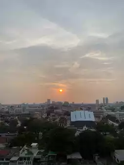 When I reached the top, I saw the Buddha's relics in the middle of the pagoda. Plus, the view of Bangkok was 360 degrees wide. The cool breeze and the sunlight slowly setting below the horizon were so peaceful and beautiful that I didn't need to say much.