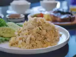 🦀 Large Crab Fried Rice (490 baht) Large plate of crab fried rice with a well-rounded flavor Lots of crab meat