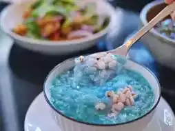 Butterfly Pea Rice Porridge with Job's Tears 35 baht (our family likes this one the most)