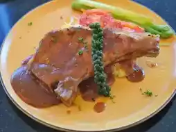🥩 Black Pepper Pork Steak (460 baht) Big pork chop, soft pork, kids love it