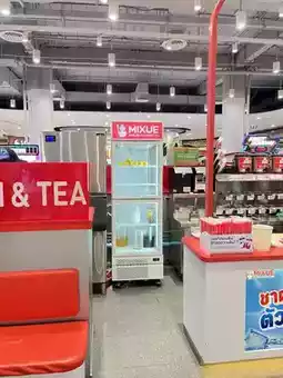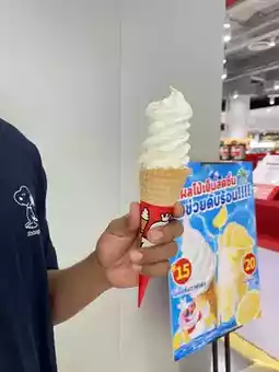 The ice cream shop located on the 3rd floor of Central Ram Intra offers a variety of ice cream and tea options originating from China 🇨🇳. Delicious and affordable, the menu includes lemon tea 🍋, peach tea 🍑, milkshake 🥛, and brown sugar bubble tea, with prices starting at just 15 baht.