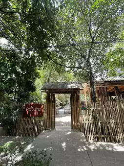 The shop is located in a hundred-year-old lychee garden on the banks of Khlong Bang Khun Thian. The atmosphere is shady and peaceful. The shop is designed with bamboo. Which reflects local wisdom and sustainability.