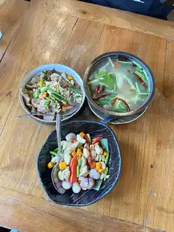 • Main dishes: Crispy pork belly with fish sauce, Grilled pork neck with chili sauce, Crispy catfish salad.