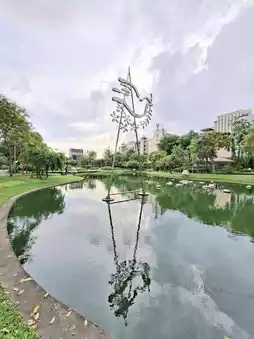 ✨️Walk 🚶♀️ a short distance to admire the city center park called Santiphap Park, which has a large pond and a beautiful reflection of the symbol of peace, a dove with an olive branch in its beak.