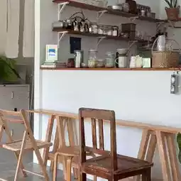 Curve Project is a homey-style cafe located in Don Mueang, Bangkok. It started as a small cafe in Nan Province before moving to open in Bangkok. The atmosphere is warm like a backyard garden, perfect for those who want to relax and enjoy coffee and homemade pastries in a quiet atmosphere.