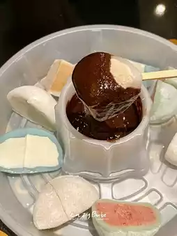 Sweet lovers 🍭 You will definitely love this because even though I am not a sweet person, I am still crazy about it. 🤩 The Thai tea bingsu menu is the best. It is very delicious, not too sweet. Served with Thai tea mochi ice cream, grass jelly, whipped cream, crushed ice, everything is perfect. Wow, I love it ✨ I highly recommend it ~ As for the chocolate fondue menu, my boyfriend really liked it. 🍫 You can choose 4 ice cream flavors. There are so many flavors to choose from. 😆 I love both. If you want to buy the regular ice cream, it is 29฿ per scoop, 4 scoops for 115฿, or if you want something special, 8 scoops for 229฿ and get 1 free scoop.