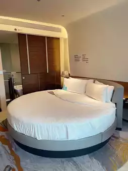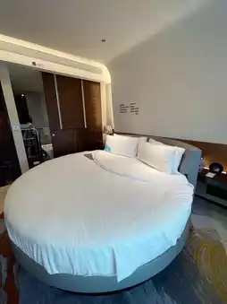 I had the opportunity to stay at Le Méridien Bangkok, a 5-star hotel under the Marriott chain, located in the Silom, Bang Rak area. It's very convenient to travel as it's close to both the MRT and BTS stations. The room I chose was a round bed room, which I haven't seen anywhere else—very unique and stylish! The bed was incredibly soft, the room spacious, and fully equipped with amenities, including a bathtub. What I loved most about this place was the breakfast. They even served champagne, and the staff at the breakfast room provided exceptional service, constantly refilling drinks. The food was diverse and up to standard. The lounge service was also excellent. I would rate the service here 10/10. Room prices start at 5xxx THB.