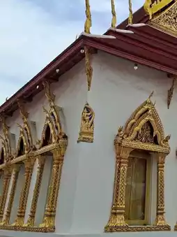 ✨️The pediment has windows and no Naga Sadung. There are both internal and external checkpoints in the ordination hall. The inside is in the middle of the wall, while the outside is at the corner. The supports are vines that look intricately connected. The roof tiles are only one color.