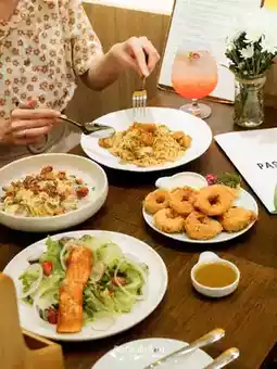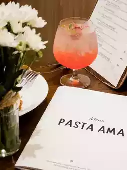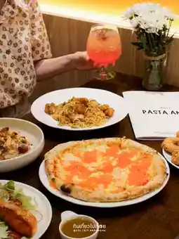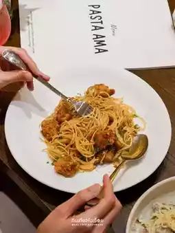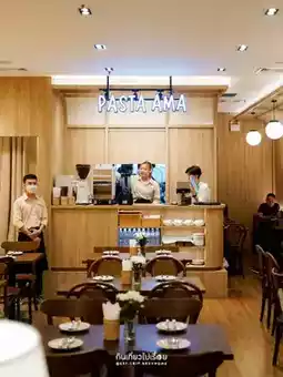 #Cafe Review PASTA AMA The newest branch on the 7th floor of Central World is now open🎊 The atmosphere is simple and minimalist. Even though the area is in a shopping mall, it is not a stand-alone, but it is warm in another way. The shop still emphasizes the yellow-cream color tone, which is the brand's signature.