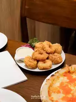 In terms of food, it is still full. The recommended menu is crispy chicken spaghetti stir-fried with garden chili peppers. It is very good! Spicy and delicious. In addition to the pasta group, there is also a pizza menu from Emma pizza to please the gang. We chose the shrimp egg topping, which was juicy and full of cheese.