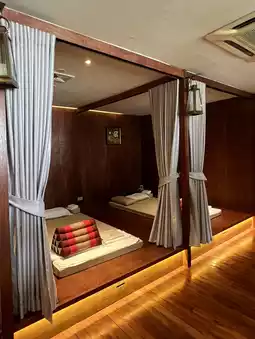 Hansar Thai Wellness Spa is a luxurious spa located in the heart of Bangkok, situated within the Hansar Hotel. The spa features elegant Thai-style decor, offering a spacious and serene atmosphere that feels both opulent and welcoming, all at an affordable price. The massage therapists are highly skilled, ensuring a deeply relaxing experience. Additionally, the spa provides consultations with therapists for health-related concerns. After your spa session, you can enjoy warm bael fruit tea and delicious snacks.