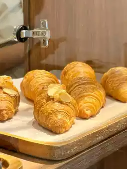 #Review Cafe KOKOPAN The atmosphere in the shop gives a feeling like being in Japan in a warm wooden 𝙃𝙤𝙢𝙞𝙚 style. There are both croissants, donuts and drinks. Order Croffle, the dough is good, delicious, fragrant. We ordered Cookie 'n caramel Croffle, a piece that can be eaten by one person, soft, crunchy, contrasting well with Fresh milk cream & jam donut, delicious. For drinks, we ordered Ichigo milk, strawberry milk, not too sweet, like this, and Premium Matcha Latte.