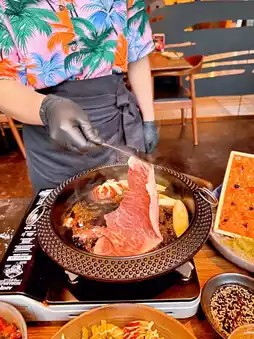 The wagyu beef in the sukiyaki pot, fried to 50% cooked, wrapped in sterile egg liquid into the mouth, the fat burst directly in the mouth, very fresh and tender!