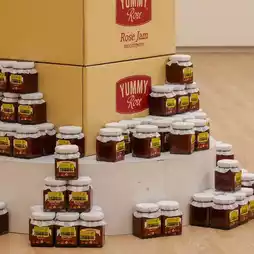 In the exhibition, we will see expired rose jam displayed as a product that is still being offered, only at a cheaper price, while its meaning is still full.