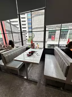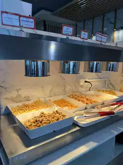 The restaurant offers a wide variety of menu options. It is spacious with plenty of seating and has a large number of staff providing quick service.