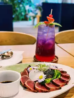 Ryoku Cafe (เรียวกุ คาเฟ่) is a Japanese-style cafe located in Sukhumvit Soi 35, near EmQuartier shopping mall and BTS Phrom Phong station. The cafe stands out for its transformation of a 50-year-old house into a cozy and serene space surrounded by lush greenery and large trees. It's perfect for relaxing, taking photos, or working.