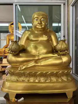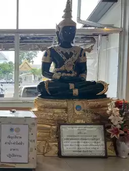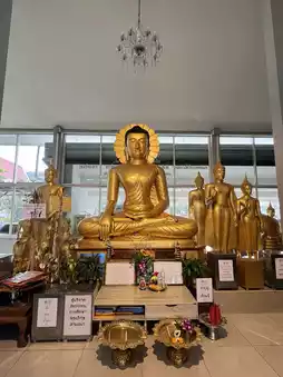 The ordination hall is large and elegant, decorated with intricate Thai patterns, making the ordination hall very beautiful.