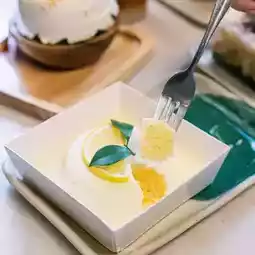 • Coconut Cake: Soft cake, fragrant with pandan leaves, stuffed with young coconut sauce