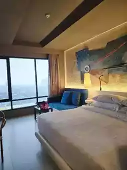 The rooms feature large beds that are perfectly comfortable for two people. Inside the room, there is a sofa and a table for dining. The bathroom includes a bathtub, and on the 11th floor, there is an infinity pool with a depth of approximately 160cm. The hotel is conveniently located near the MRT, with a 7-Eleven and Lotus Supermarket nearby, making shopping very convenient. The environment is beautiful and pleasant, and I really like it here. The food served here is also excellent and truly delicious. If you visit, don't miss out—make sure to try it! Highly recommended!
