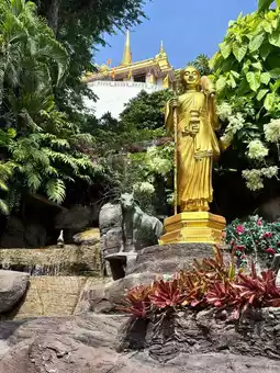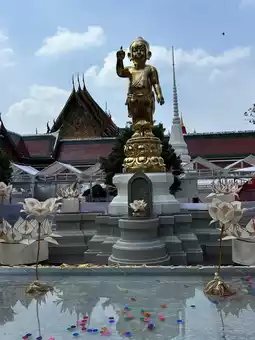 Wat Saket Ratcha Wora Maha Wihan or Wat Phu Khao Thong is another temple that I would like everyone to visit to make merit and pay respect to the Buddha. It is located in the Pom Prap Sattru Phai district. Some people may have heard the name from the TV drama Buppesannivas. This temple is an ancient temple from the Ayutthaya period. The highlight is the Phu Khao Thong pagoda, which is prominent and can be seen from afar. It is the place where the Buddha's relics from India are enshrined. It is open daily from 7:00 a.m. to 7:00 p.m. The entrance fee is free for Thais and 100 baht for foreigners. Come visit us! #Wat Phu Khao Thong #Wat Saket Ratcha Wora Maha Wihan