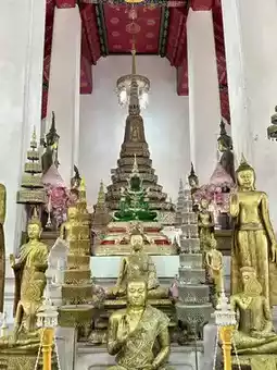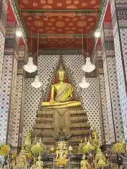 Upon arrival at Wat Arun, it is recommended to turn right and pay respects to the principal Buddha image in the ordination hall for blessings. Afterward, explore the iconic white prang of Wat Arun. A must-see highlight is the two small pavilions. In the first pavilion on the left, you’ll find a sacred relic of the Buddha. Paying respects here is believed to bring good fortune. Opposite the Buddha image in this pavilion is the royal bed of King Rama II (King Buddha Loetla Nabhalai). It is suggested to pass under the royal bed for blessings and good luck.
