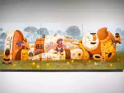 who has gathered 12 young and energetic Thai artists such as Banana Mans, Jayoto, Jakes BKK, Malee Naree, and many more to tell stories through an artistic perspective about how the past, present, and future of humanity are connected and how much the world we live in will change?