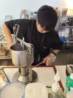When you stand in front of the counter of Mihimihi, you will definitely be attracted by the wide variety of puff flavors! From classic original flavor, rich matcha, to sweet but not greasy strawberry, Thai milk, and chocolate, each one makes people fall into a difficult choice