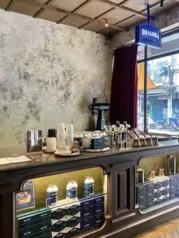 It's decorated in a simple and luxurious style, combining classic styles with the atmosphere of an old building. The highlight of Shaloba is that it brews coffee using the Sand coffee method, which gives a clear body and flavor. I tried it and the coffee was very fragrant and I really liked it. The coffee in the shop is divided into 3 series: CoffTea, Exotic Coffee, and Local coffee. There are light-medium roasted coffee beans. I ordered a Latte and chose Before Sunrise beans, which is a Cofftea menu that combines coffee from Eth and Earl Grey tea. It has a very refreshing berry aroma. In addition, there are cakes to eat with the coffee.