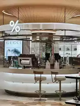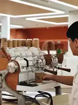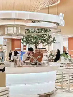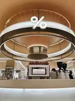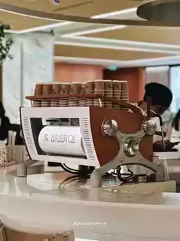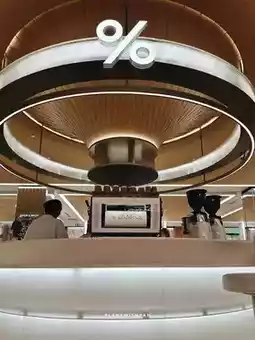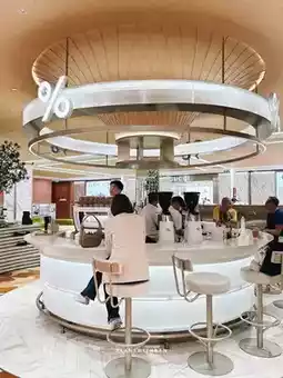 Arabica Thailand ร้านตกแต่งด้วยโทนไม้และแสงไฟอบอุ่น โดดเด่นด้วยบาร์ทรงกลมซึ่งเป็นเอกลักษณ์ของแบรนด์ ให้ลูกค้าได้สัมผัสกระบวนการชงกาแฟอย่างใกล้ชิด