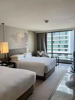 Hidden in the bustling heart of Sukhumvit Road, the Bangkok Marriott Marquis Queen’s Park Hotel stands as an urban oasis, overlooking the lush Benjasiri Park. Surrounded by rare greenery, the hotel boasts a grandiose design with a soaring lobby and spaces infused with Thai-inspired aesthetics, offering a blend of opulence and warmth. Step into the rooms, and the expansive floor-to-ceiling windows reveal a harmonious view of the city intertwined with nature, providing a tranquil escape amidst the urban hustle.
