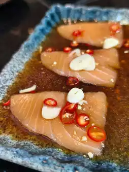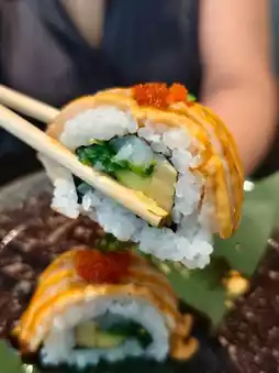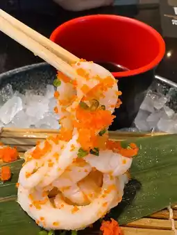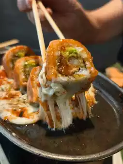 🍣 Engawa Tomyum Sauce Sushi Sushi topped with engawa tom yum sauce, authentic Thai spicy flavor And many more menus that you can order as much as you want! 🤤