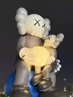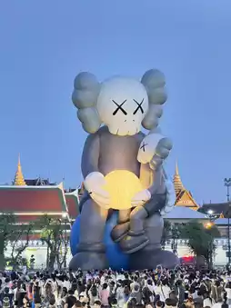 The first time in Thailand! With world-class art, this time KAWS brings a giant COMPANION, 18 meters tall, sitting and hugging the world with the moon, and also a small COMPANION sitting on his lap, super cute, invading the Sanam Luang area, the greatest that has never been seen before in Thailand, from May 13-25, 2025. Small tips for those who will go to see KAWS at Sanam Luang. The most beautiful time of the day is 18.00-19.00 because it is the time when the sun sets. The lights of Wat Phra Kaew will start to turn on around 18.30 and the globe lights that KAWS is holding will turn on at 18.50. If you go during this time, you will be able to see the view both during the day and at night 👍🏻