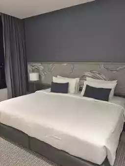The hotel is designed in a modern minimalist style, offering a warm and private atmosphere. The rooms are spacious, clean, and fully equipped with amenities such as a large bed, flat-screen TV, work desk, refrigerator, and microwave, making it suitable for both tourists and business travelers.