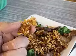 • Deep-fried sun-dried beef, oh my, it's so awesome! The fried beef is soft and the fried sticky sauce is crispy. Dip with jaew for the best taste