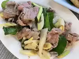 • Marinated pork, very soft, really marinated into the meat, no toughness to bother you, eat with the restaurant's special dipping sauce with pounded chili, garlic, and lime, sour and spicy, I must say it's awesome