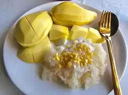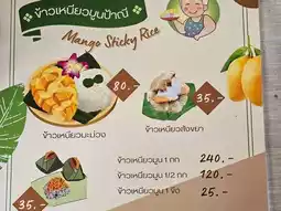 📝 Recommended menu: Mango Sticky Rice with Nam Dok Mai & Ok Rong mangoes; Sticky Rice with Dried Fish Topping; Sticky Rice with Custard Topping