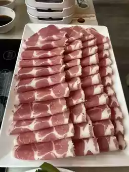 ✨The buffet menu here is full, with sliced pork with firm, beautiful marbling, soft and melting in your mouth, without dipping in anything, it's already delicious 🐷💖 Anyone who loves soft meat must give it a thumbs up! But what makes your heart melt even more is the "3 Styles of Shabu Dipping Sauces"