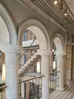There is also a gorgeous iron spiral staircase in the center of the courtyard.