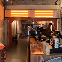 This local brand was founded by four local boys, and the space is a renovated old building that seamlessly blends modern trends into the narrow alleys. It's hard to miss this spot in the small lanes. The shop itself is compact, with only a few seats, and its dark and orange tones highlight its edgy and stylish vibe. The back wall features reflective lettering paired with red spring couplets, creating a striking yet harmonious contrast.