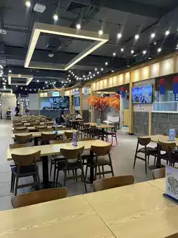 K-StrEAT is decorated in authentic Korean style, complete with K-POP neon signs and an ambiance that makes you feel like you're strolling through Seoul. Seating options include indoor areas and window-side spots, ideal for relaxing with friends or family.