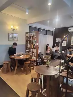 🪑 There are many types of tables, not crowded at all. You can sit and work, read a book, or just sit and stare while listening to music. The vibe is all there~ 🎶📔
