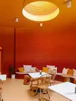 Ember Cafe & Wine is a distinctive café and wine bar located in Rama 9 Soi 43, Bangkok. The establishment is renowned for its innovative architecture, inspired by the Grand Canyon and constructed using SCG 3D Printing technology. This approach allows for curving lines and shapes, resulting in a building that resembles a volcanic crater, with flowing wall patterns and earthy red tones that create a sense of movement and integration with nature.#rama9